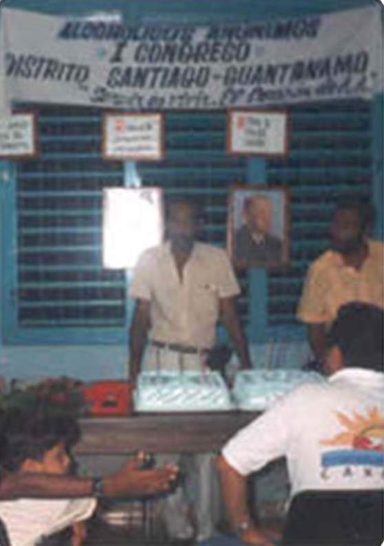 En la segunda quincena de enero viajan a Cuba 7 miembros de la comunidad de Alcohólicos Anónimos de San Francisco, California, quienes habían hecho ya los primeros contactos con los Pastores Bautistas JUAN F. y su esposa ESTELA H., y en la noche del 18 de enero de 1993, a las 8:00 PM, se reúnen en un local de esa iglesia con unos cuantos presuntos enfermos de alcoholismo quedando constituido el PRIMER GRUPO DE ALCOHÓLICOS ANÓNIMOS EN CUBA.